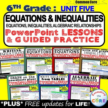 | Expressions, Equations, Inequalites: 7th Grade PowerPoint Lessons Guided Practice Bundle |